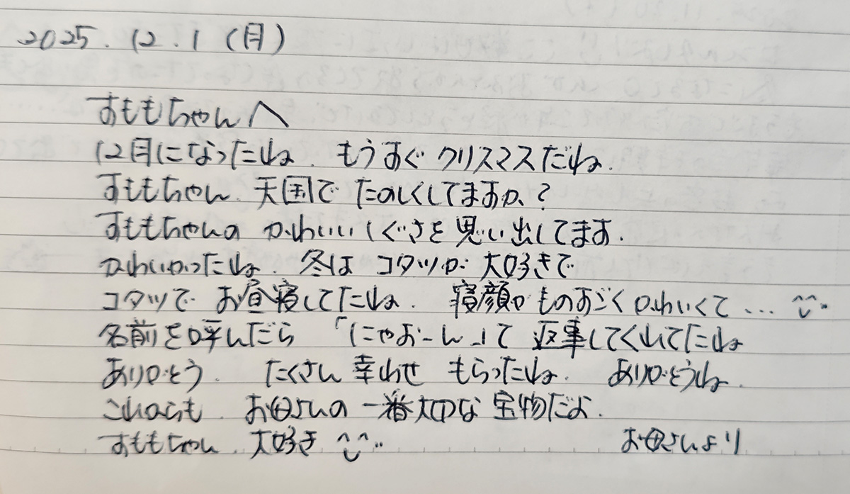 飼い主様からお寄せいただいた、大切なペットちゃんへの想いと気持ちを綴ったメッセージをご紹介します。