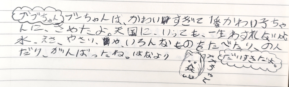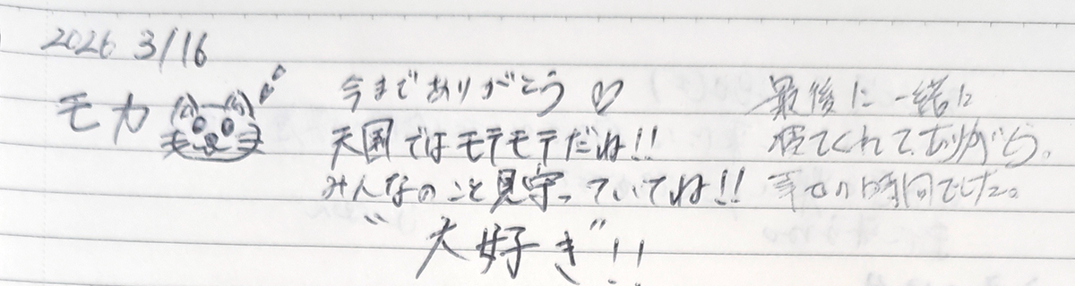 本当にまめちゃんにいやされて、楽しかったよ。豆ちゃんにとって大好きな家族だったかは分からないけど、本当に大好きだよ。